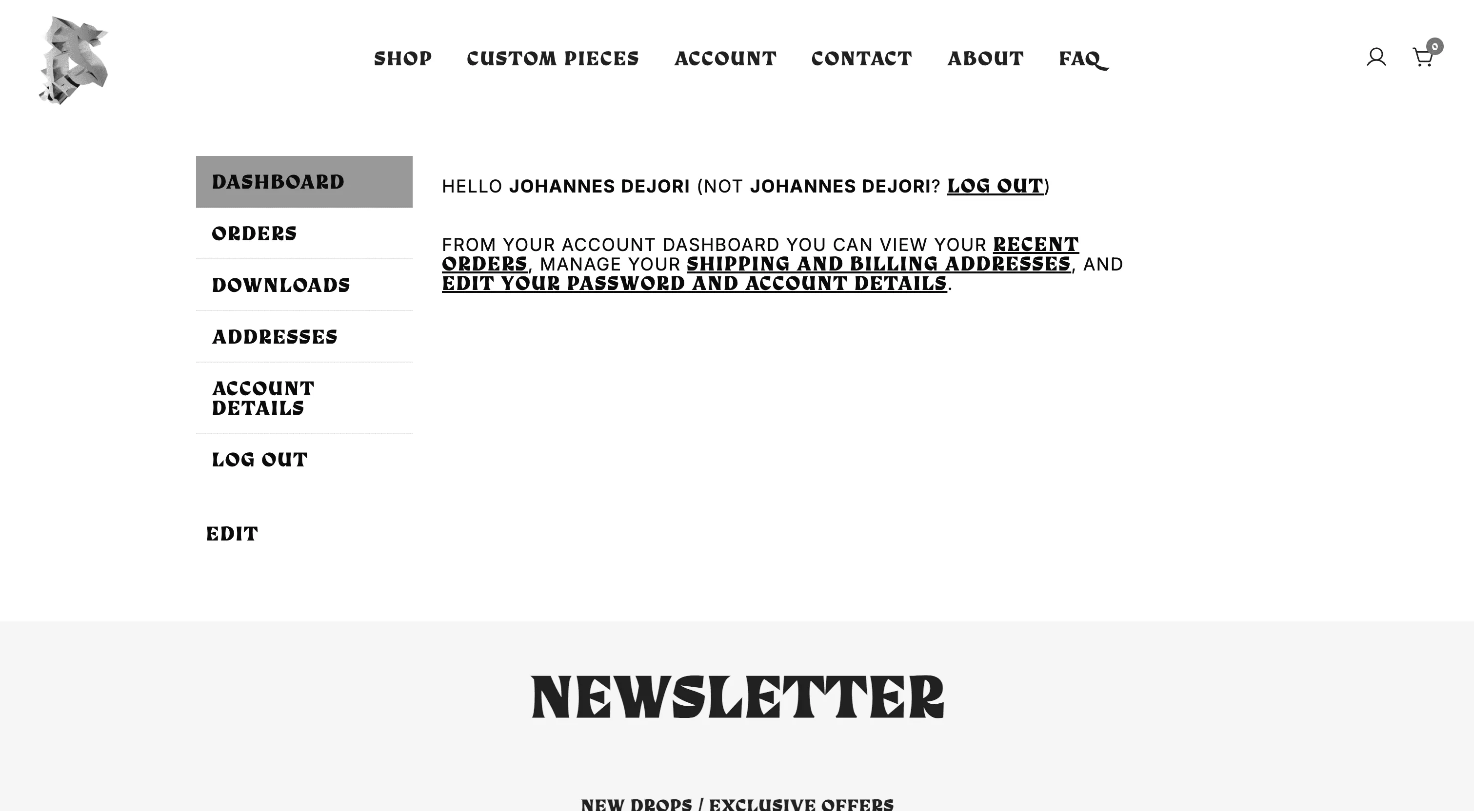 The redesign included a full restructuring of the shop categories, making it easier for customers to navigate between Exhibits and Custom Pieces, with further subcategories for tailored items like Pants, Shorts, and Skirts. We also added a Coming Soon page with a newsletter subscription option to engage future customers.