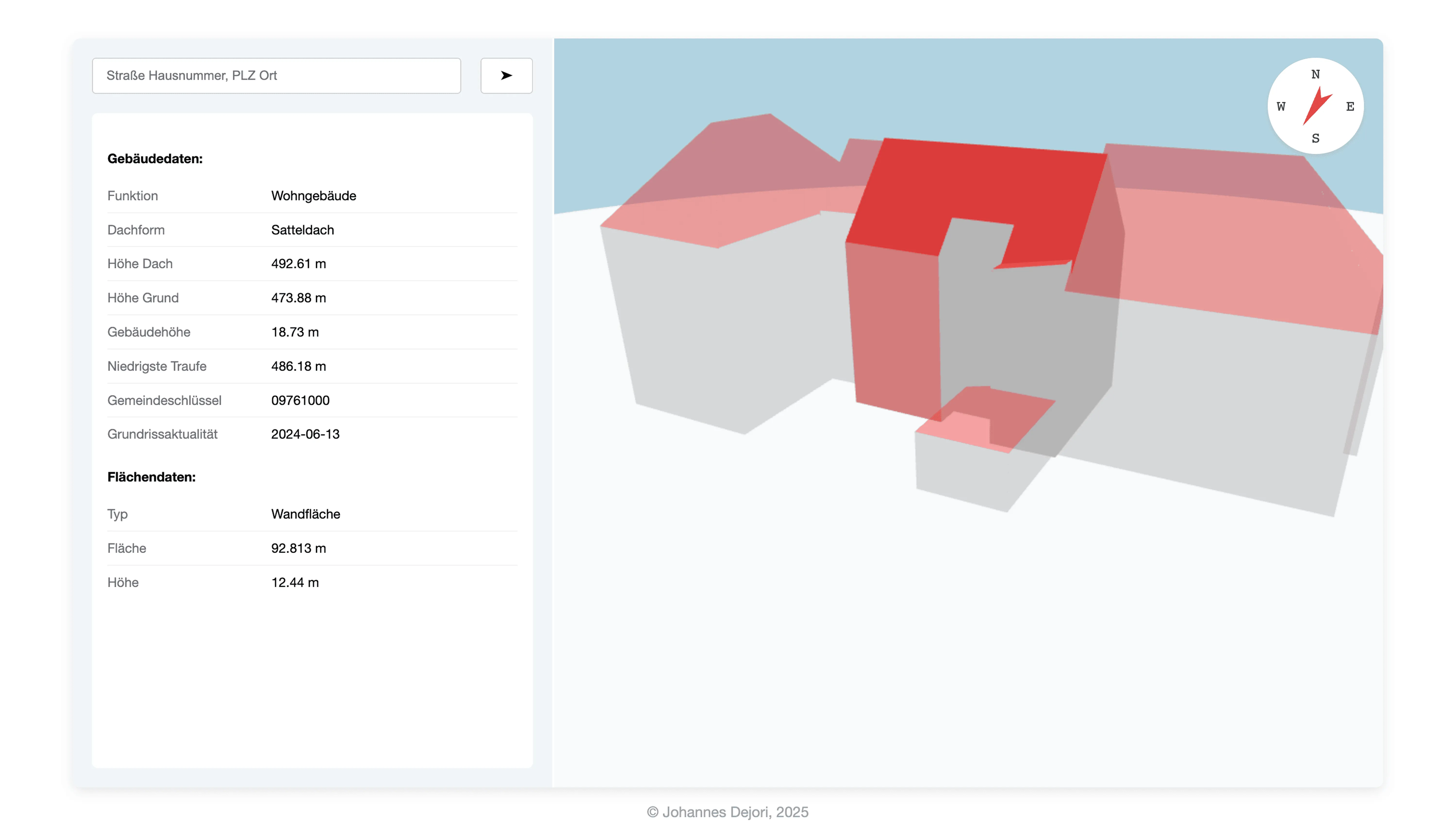 The project introduces a modular, web-based prototype that automatically extracts individual buildings from these datasets using an address or geographic coordinates and visualizes them as interactive 3D models directly in the browser.