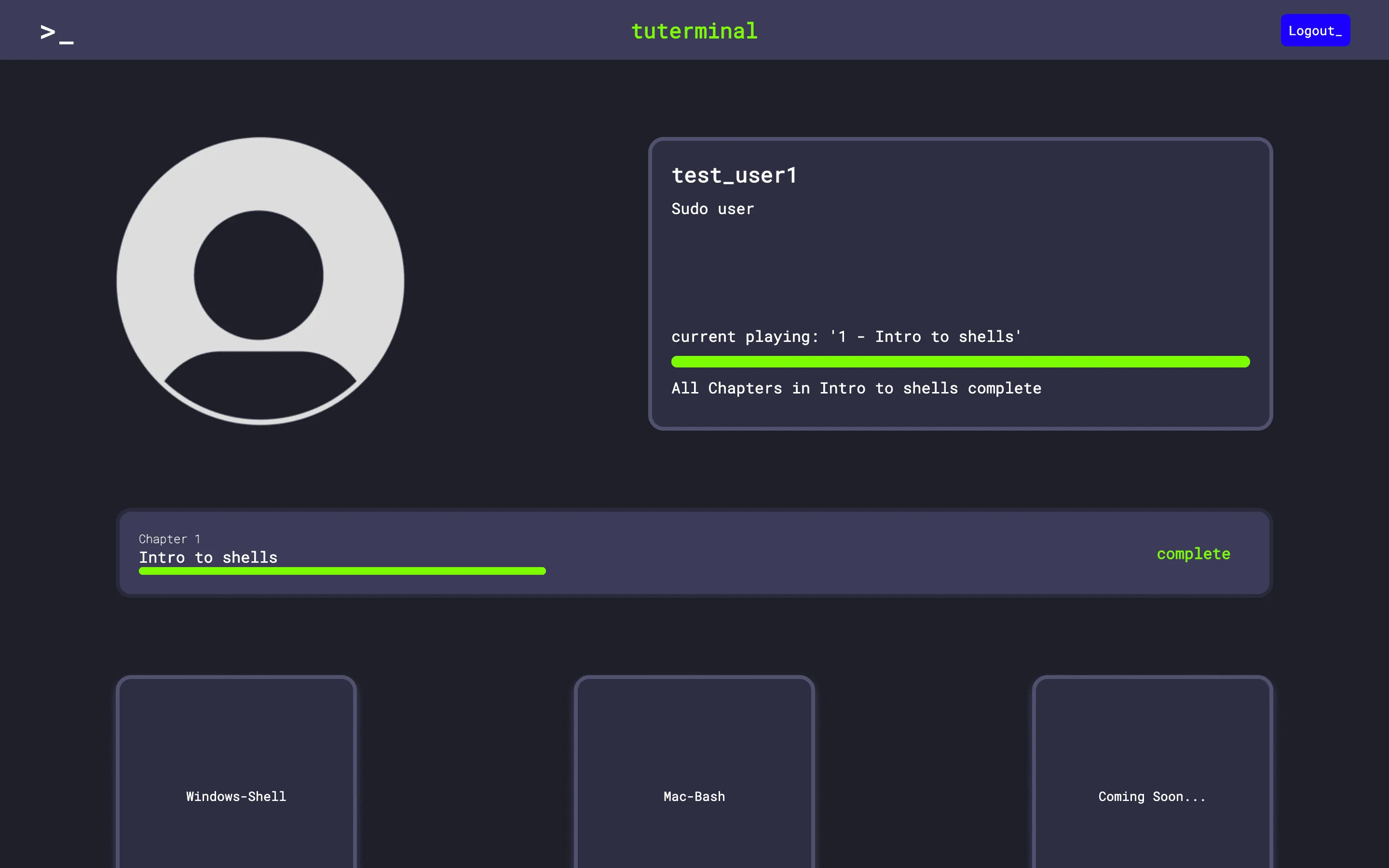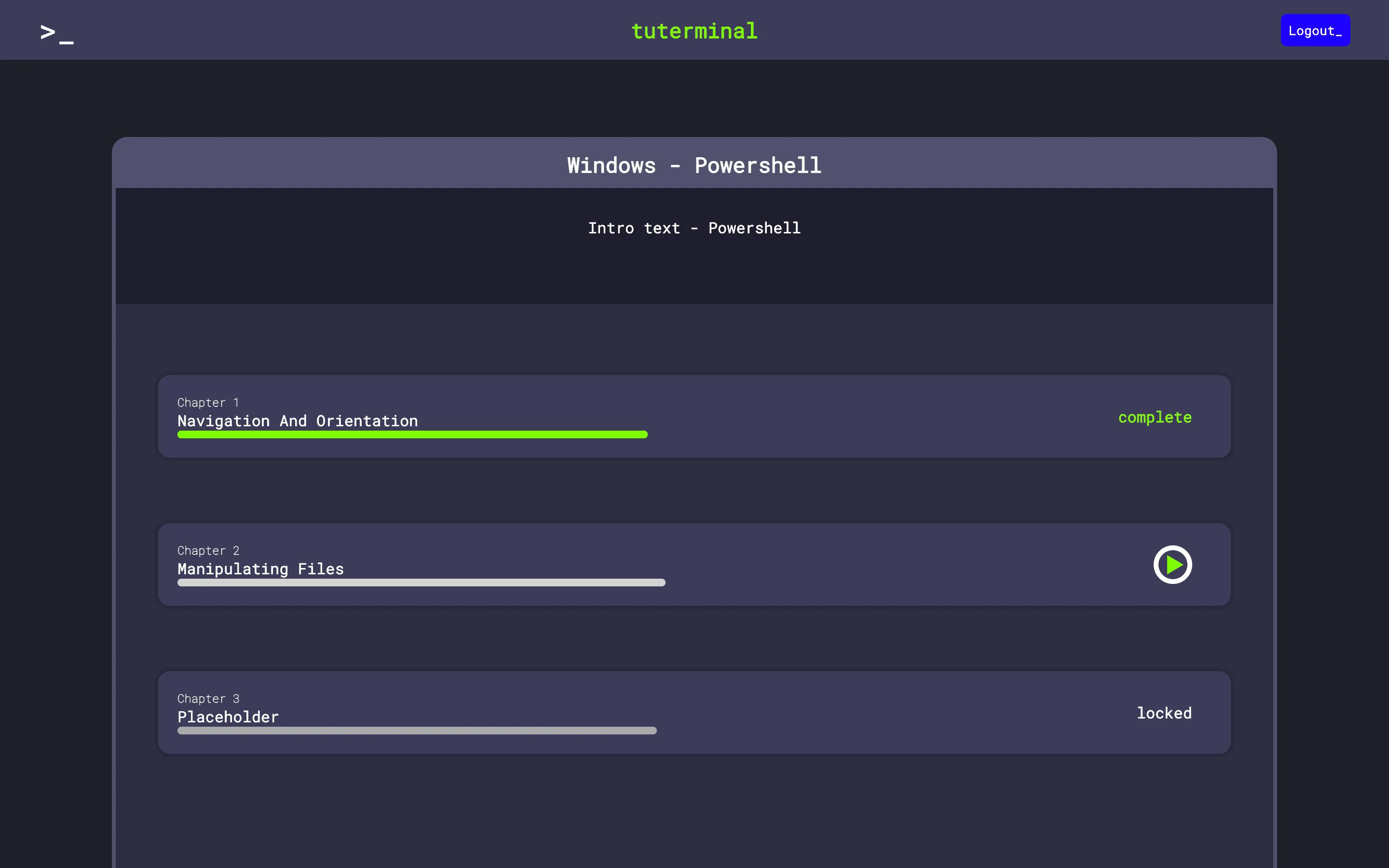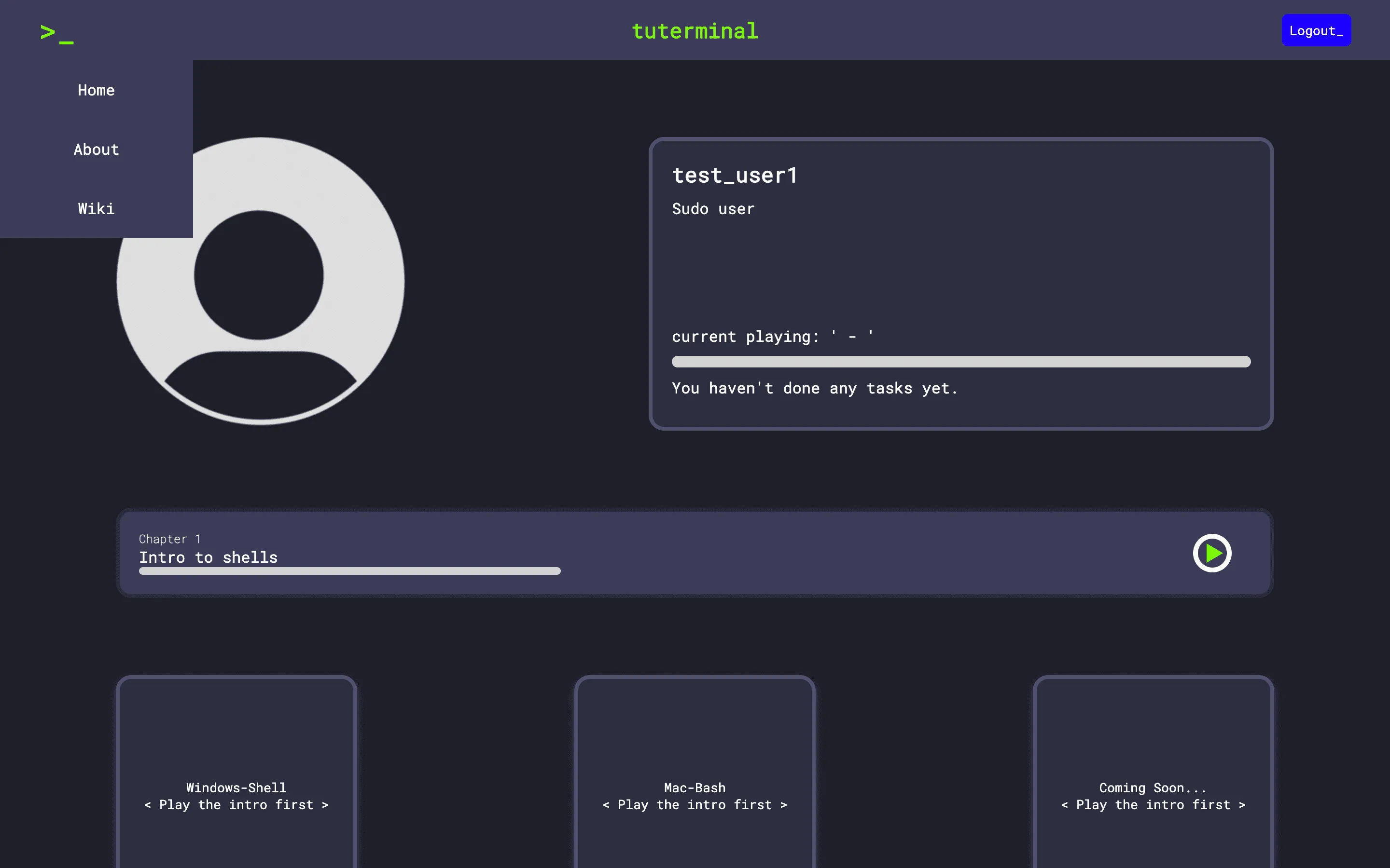 Tuterminal is a web application for people that want to learn hot to master different Shells. It provides tutorials with small exercises to practice the commands for different Shells. It is built modular so that new tutorials can be added easily through an web interface.