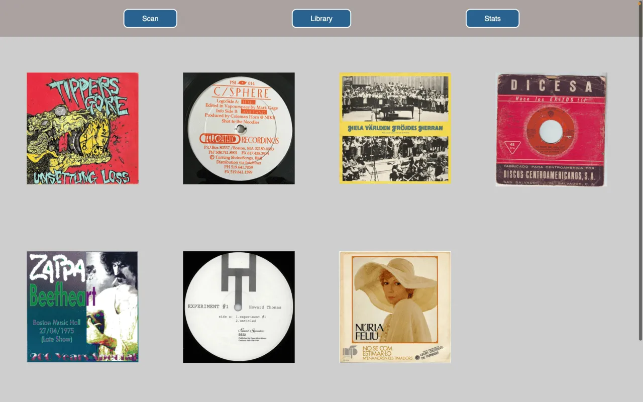 Operationally, we send barcodes to the Discogs API to retrieve essential information—album title, artist, and the vinyl cover. These details are then stored in our database, along with the initial scanning date. Additionally, a counter keeps track of the number of times each record has been played, enhancing the user's interaction with their vinyl collection.